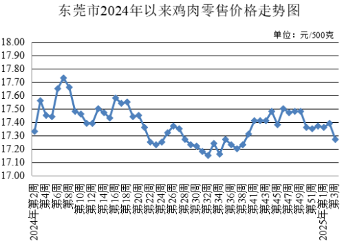 第3周,牛肉農(nóng)貿(mào)市場零售均價(jià)為每500克46.80元,較上周下降0.09%。牛腩農(nóng)貿(mào)市場零售均價(jià)為每500克43.50元,較上周下降0.21%。雞肉農(nóng)貿(mào)市場零售均價(jià)為每500克17.27元,較上周下降0.69%。