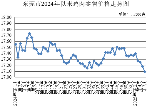 第7周,牛肉農(nóng)貿(mào)市場(chǎng)零售均價(jià)為每500克46.68元,與上周持平。牛腩農(nóng)貿(mào)市場(chǎng)零售均價(jià)為每500克43.14元,較上周上升0.21%。雞肉農(nóng)貿(mào)市場(chǎng)零售均價(jià)為每500克17.09元,較上周下降0.52%。